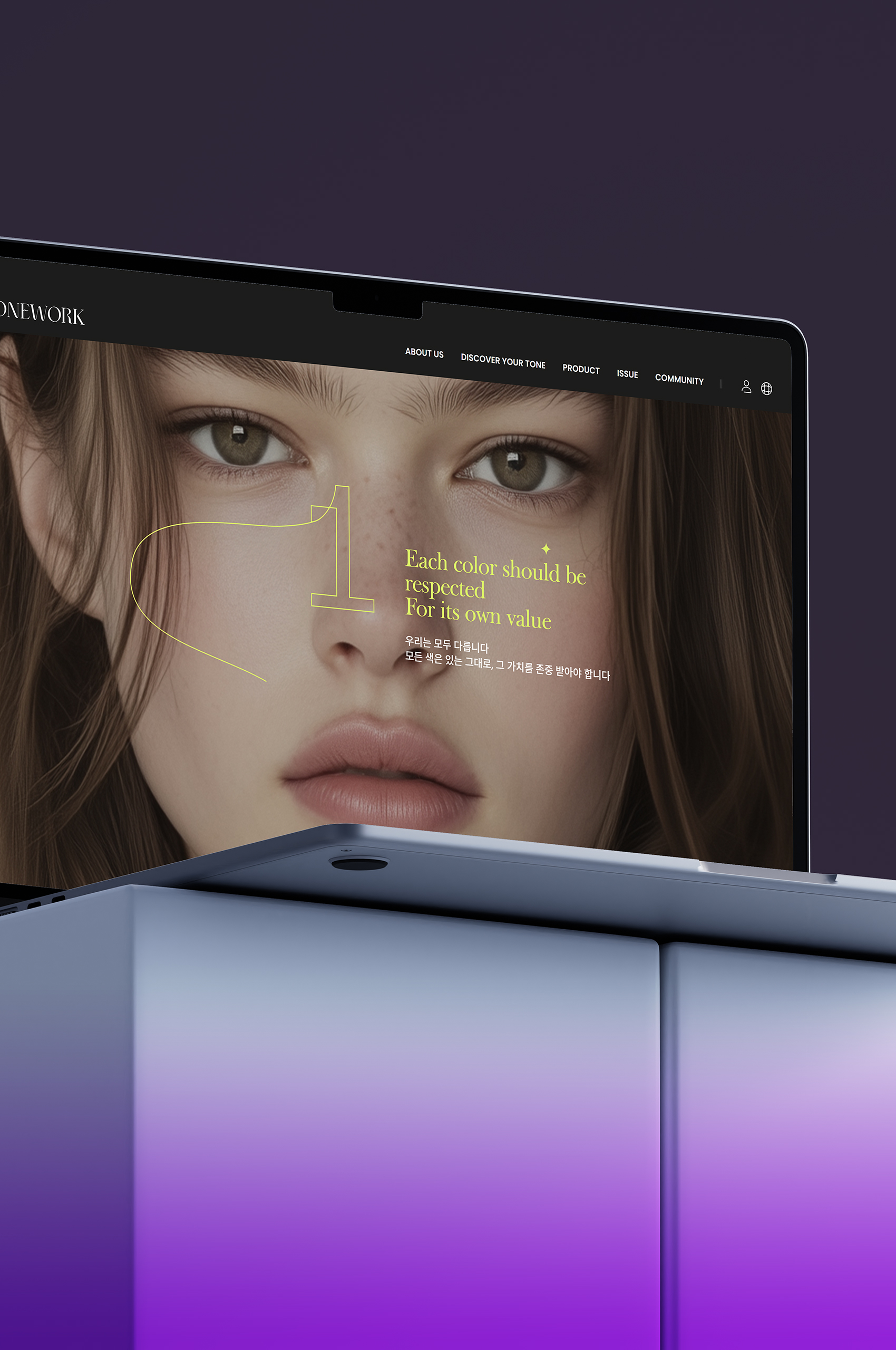 톤워크닷컴 프로젝트를 통해 피부 진단을 통한 사용자 맞춤형 화장품인 톤워크의 브랜드 가치를 전달하고, 제품 탐색에서부터 구매로 이어지는 사용자 중심의 여정 설계로 서비스의 관여도를 높이고자 하였습니다. 또한 사용자가 200가지가 넘는 제품 옵션을 쉽게 탐색할 수 있도록 Filter Shade Range UI, 다이얼로그형 컬러칩 구성 등 혁신적인 UI를 도입하였습니다.