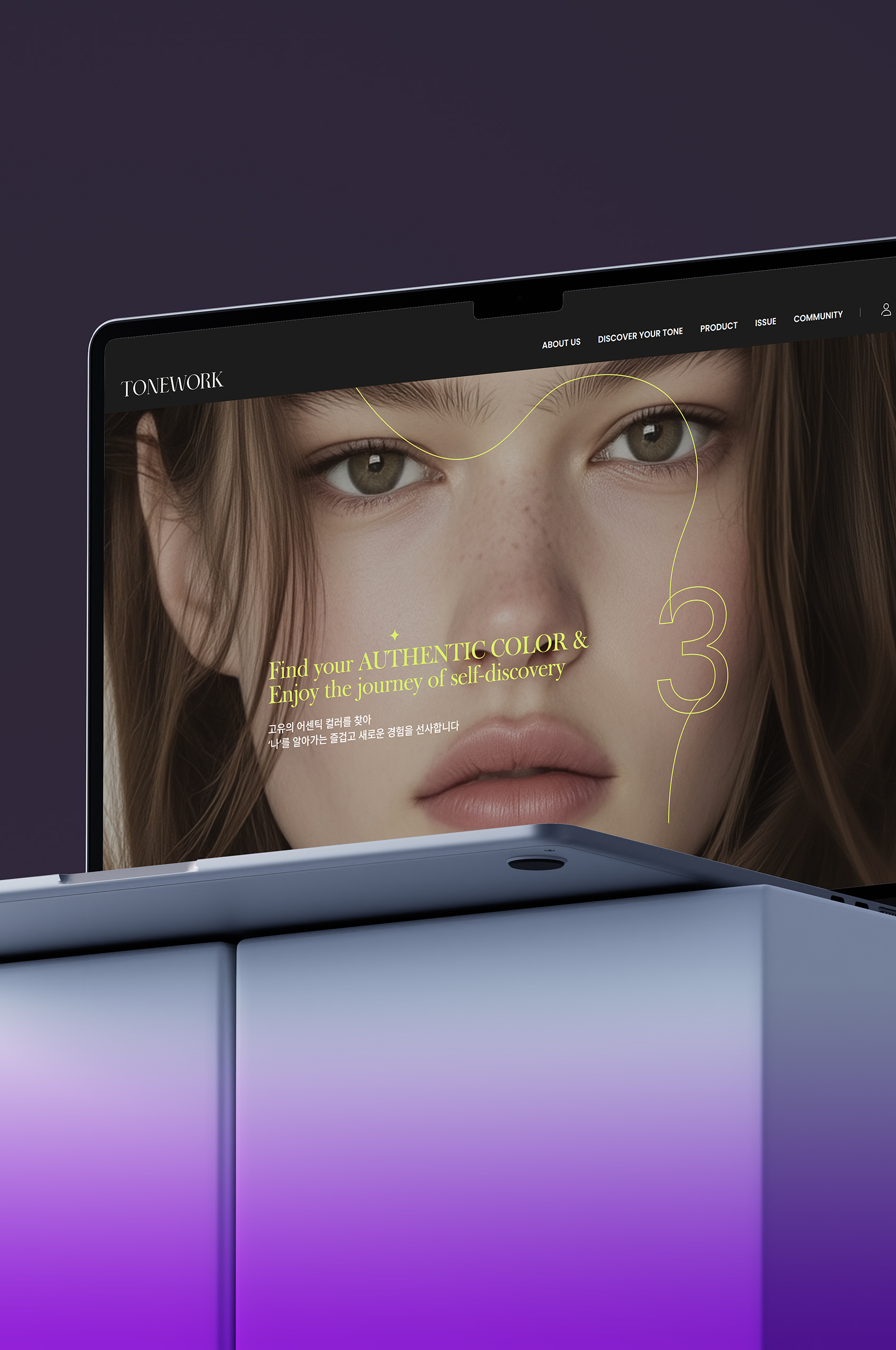 브랜드 스토리에 시각적 매력과 사용자 몰입도를 높이는 효과적인 기법을 적용했어요. 톤워크 브랜드 철학을 이미지와 메시지로 효과적으로 전달하고자 동적인 움직임을 더해 창의적인 디자인을 구현할 수 있었죠.